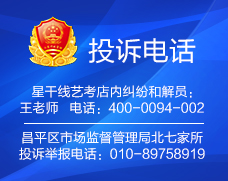 星干線藝考店內(nèi)糾紛和解員:王老師 電話:400-0094-002|